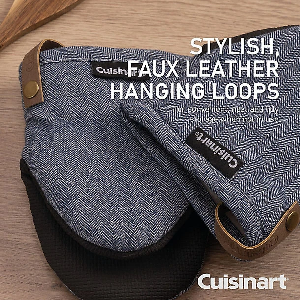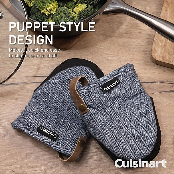 2 Cuisinart Neoprene Mini Oven Mitts Herringbone Blue