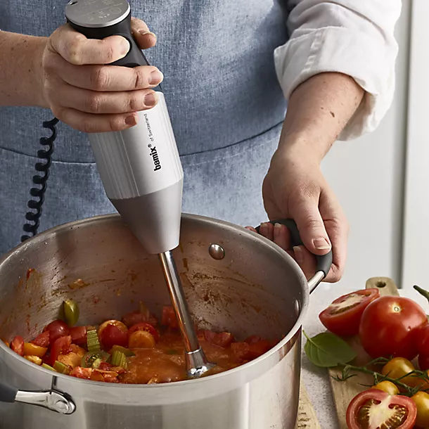 We’ve worked closely with Bamix to produce this exclusive machine. Precision engineered in Switzerland, the versatility of the Bamix Swissline Hand Blender make it more like a hand-held food processor than a stick blender.