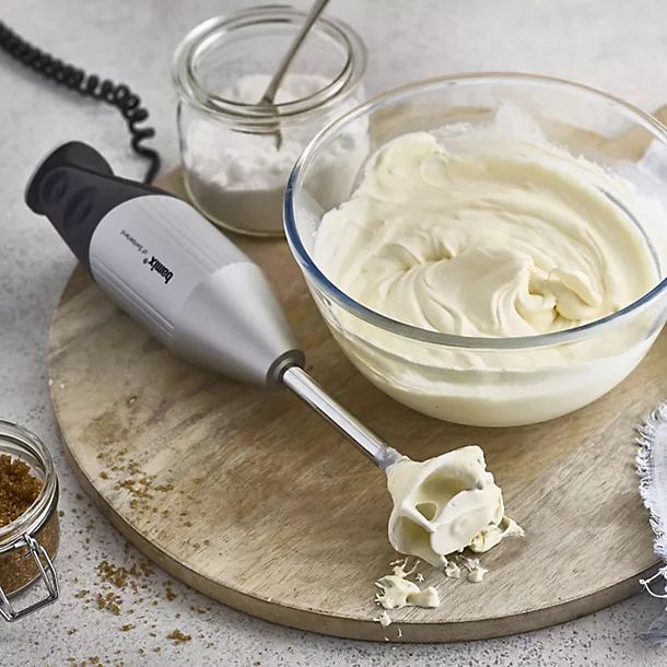 Renowned for its ability to transform cold skimmed milk to the consistency of rich cream, a Bamix will help you power through all sorts of velvety smooth blending tasks. Lakeland have been a Bamix stockist since the end of the last Millennium in 2000, because we think it’s a truly reliable piece of equipment that fits easily into any type of kitchen.