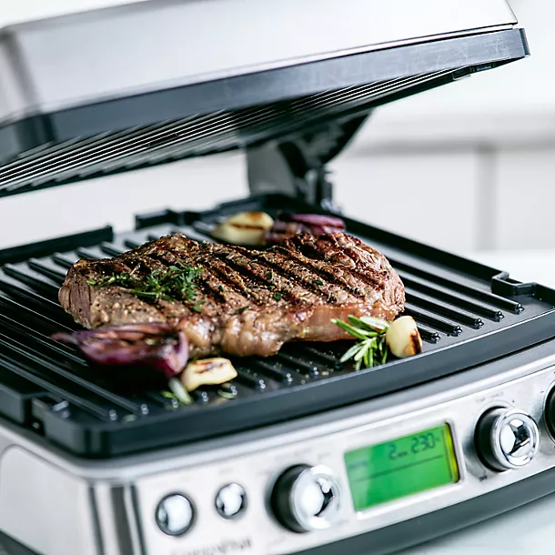 As well as a conventional grill that can be closed to cook foods like juicy chicken breasts or filling-stuffed paninis, it can be opened up and laid flat to use as a hot plate for grilling and searing meats, frying eggs for breakfast, or even making pancakes.