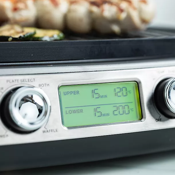 It’s even clever enough to have independent settings for the top and bottom plates, so you can set separate temperatures and cooking times for the upper and lower plates, or select the same for both, to give you even more choice and control over your cooking.