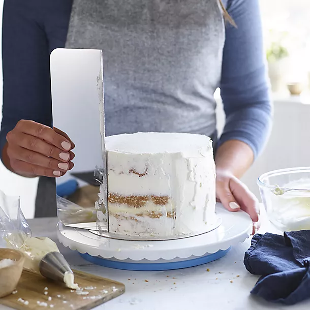 To keep in complete control when icing or decorating, just turn this freely rotating Icing Turntable and your cake will be exactly where you need it. Turning smoothly to give you even results when coating your cake with icing, and making it easier to get 360° coverage with your decorations, this turntable is an essential for any enthusiastic baker.