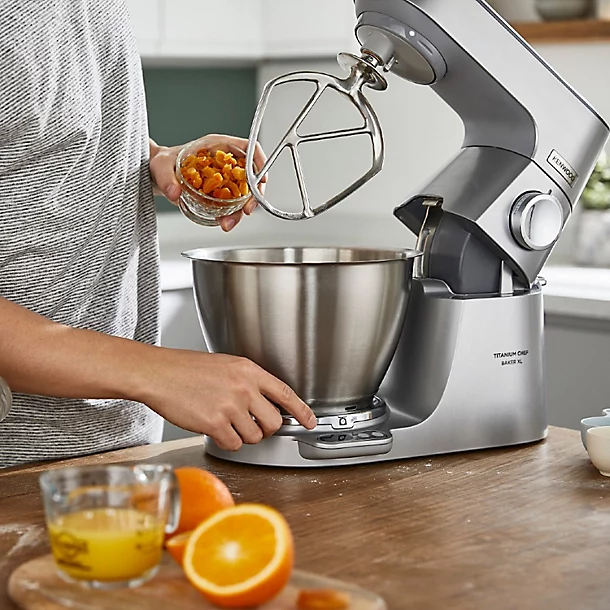 - K-Beater – perhaps Kenwood’s most famous mixing tool, it’s precision engineered from sturdy stainless steel to reach every part of the bowl while making mixes for cakes, biscuits, pastry and icing, and can even be used for making silky-smooth mashed potato, or combining fish cake mixes.