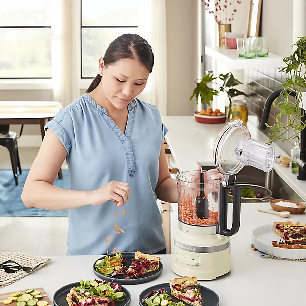 Take the hard work out of food prep with this stylish KitchenAid 2.1L Food Processor in Almond Cream. Packed full of power, it makes light work of all your chopping, shredding, slicing, kneading and mixing kitchen prep and will sit proudly on any worktop.