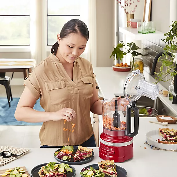 Prep like a pro with this powerful and versatile KitchenAid 2.1L Food Processor in stylish Empire Red. With the ability to chop, shred, mince, slice, knead, whisk, purée, stir (the list goes on…), it takes the hard work out of kitchen prep to give you more time to finesse the finer details in your cooking and baking.