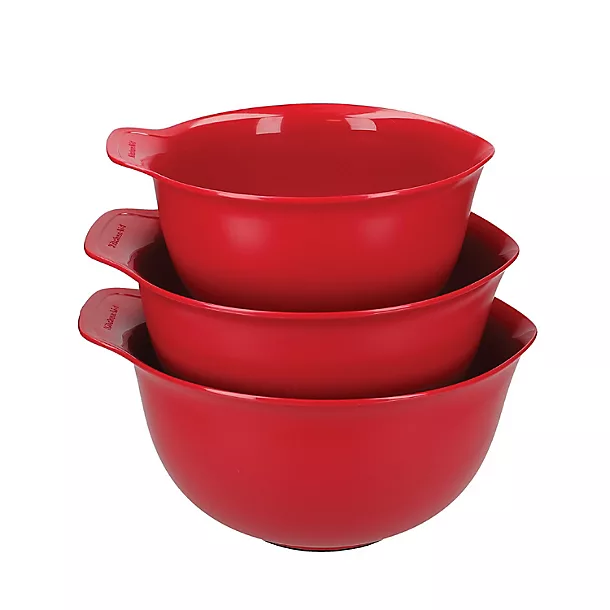 Just the thing for mixing dough, batter or dressings, this set of three mixing bowls from KitchenAid will come in handy for all manner of jobs in your kitchen. Each bright red bowl features a pouring spout and handle for ease of use, and non-slip bases keep them in place as you work. And when you’re done, they can go in the dishwasher for easy cleaning, then nest for easy storage.
