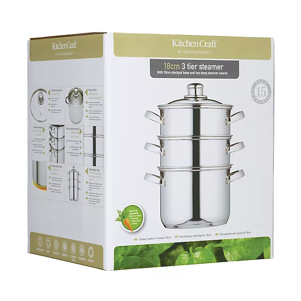 When it comes to delicious, nutrient-packed food, a good steamer is pretty much an essential, and they don’t come much more user-friendly than this 18cm Three Tier Vegetable Steamer from KitchenCraft.