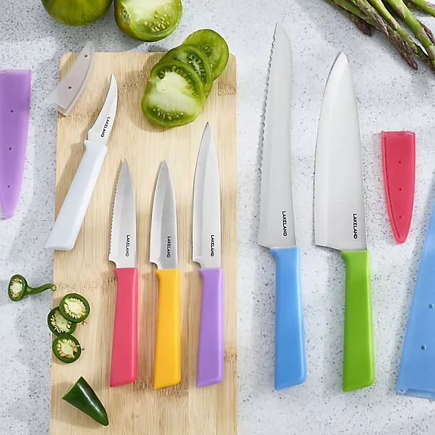 Each one has a hand-sharpened, ultra-sharp, double-bevelled blade to chop, slice and peel food easily without it sticking.