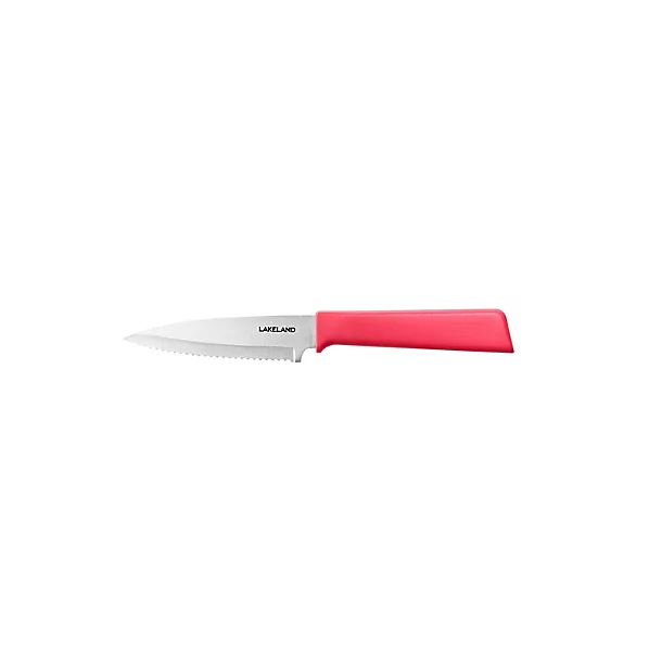 - 2 x 9.5cm paring knives – a straight-edged knife for all those little jobs like chopping garlic and ginger, trimming mushrooms and slicing strawberries, and a serrated knife for cutting through tougher skins and rind, or slicing citrus fruits.