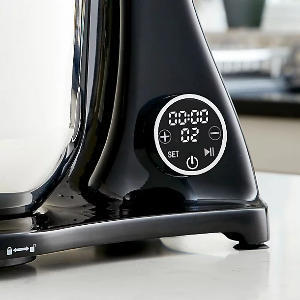 The LED digital touchscreen display makes setting the mixing time really straightforward, and means you can also easily choose between the 10 different speed settings to suit whatever you’re mixing. And with a hinged tilting head, it’s easy to change the click and twist-on attachments from whisk to beater to dough hook.