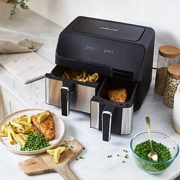 We all know air frying is the healthier way to fry your favourite food, using hot air instead of oil to get the taste you love without all the grease or the calories. But with two separate baskets for cooking different foods at the same time, the Lakeland Dual Air Fryer takes cooking to a whole new level, letting you get twice as much out of your air fryer in the same amount of time – time-saving and energy-saving, what’s not to love? And it’ll help save money as well. If you’re a family who loves a weekly chippy tea, you’ll save plenty of pennies by treating yourself with a Friday ‘fakeaway’.