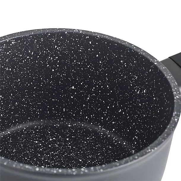 Made from lightweight, durable aluminium for ease of use and excellent heat distribution, this everyday pan range features a hard-wearing double layer of non-stick on the interiors so you’ll hardly need to use any oil during cooking. The ‘speckled’ effect sets them apart from lots of other pan ranges, comfy soft-touch, stay-cool handles make them a doddle to lift and move around, they can be used on any hob, including induction, and they can go in the oven up to 170°C.