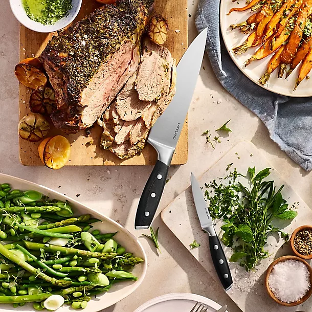 If you’re looking for the perfect balance of style and functionality then this superbly made range is for you. Each blade is forged from durable Japanese steel for excellent stability, sharpness and longevity. Not forgetting comfort, the ergonomically shaped handles are made from hard-wearing pakka wood, have enlarged bolsters, and are triple-riveted for safety. We’re so confident you’ll love these knives, we’ve given them a 10-year guarantee.