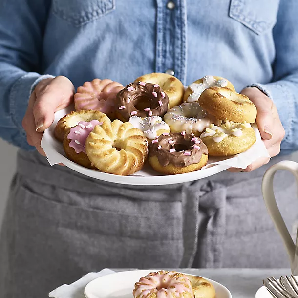 From bake days with the little ones, making party treats or jazzing up an afternoon tea, the 12 individual doughnut holes ensure your creations will be beautifully shaped and identically sized – so there’ll be no your-bit’s-bigger-than-mine envy when it comes to handing these doughnuts around. And being made from silicone the reinforced mould offers even baking, rapid cooling and quick, easy release too.