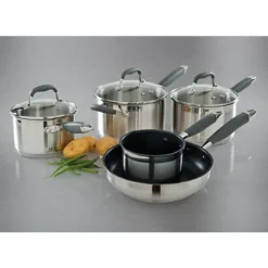 This one is made from sturdy, metal utensil-friendly stainless steel with a close-fitting glass lid so you can see at a glance what’s going on and riveted, soft-touch handles stay cool for comfy use.