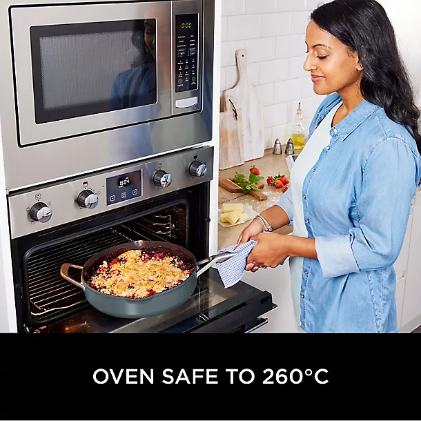 Suitable for all hob types, including induction, and oven-safe up to 260°C, this pan’s been designed to make everyday cooking easy, functional, and stylish – with the stainless-steel handles and elegant matte finish only adding to the appeal.