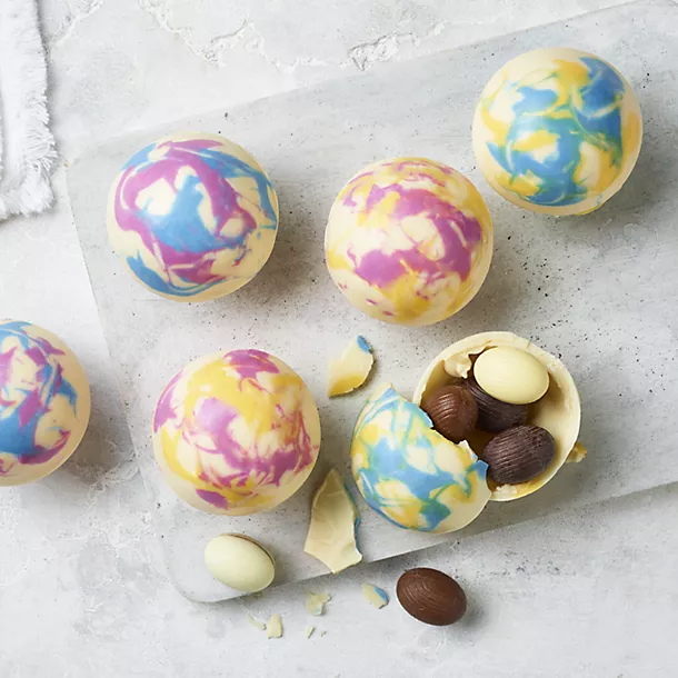 Chocolate teacakes; ladybirds and caterpillar cakes; doubled up to make footballs, unicorns, penguins or globes… whether you coat these moulds with chocolate then pipe them full of marshmallow, or fill them with cake mix, the twelve individual domes ensure that your creations will be beautifully shaped and identically sized – so there’ll be no your-bit’s-bigger-than-mine envy when it comes to handing your treats round. And if you do use it to create little cakes, this reinforced silicone cake tin offers even baking, rapid cooling and quick, easy release.