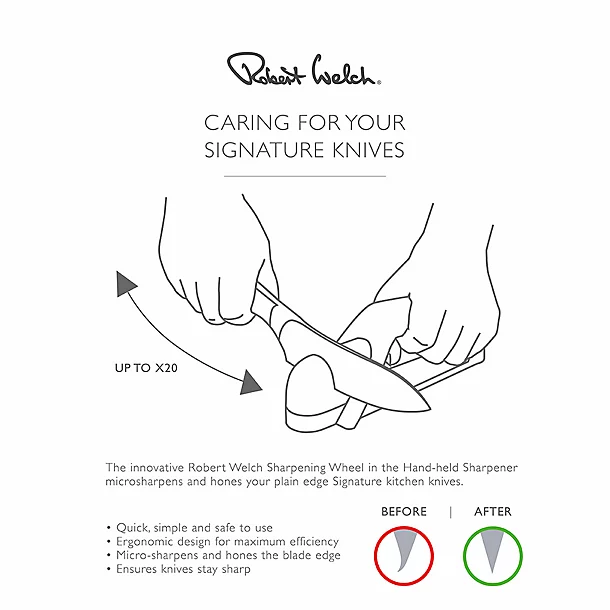 Developed with professional chefs, and combining their eye for sleek, stylish design with usability, the Robert Welch Signature Knife Range is perfect for any kitchen, from professional chef to aspiring home cook.