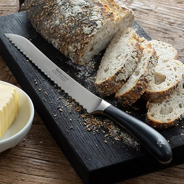 With its sharp, serrated blade, the Robert Welch 22cm Signature Bread Knife slices through a crusty loaf as if it were butter. It is also perfect for softer loaves and rolls, cutting them without squashing, and can even handle fruit without catching.