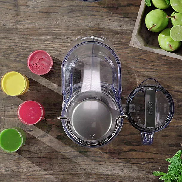 The innovative elevated spout allows for the extra-large 2 litre jug with froth separator, perfect for creating enough juice for the whole family and, if you want to save your fresh juice for later, the seal and store lid means it can be kept in the fridge for up to 3 days. If you only want to make one serving of fresh juice, the additional custom-designed juicing nozzle can be placed over the spout, perfect for mess-free juicing straight into a drinking glass.