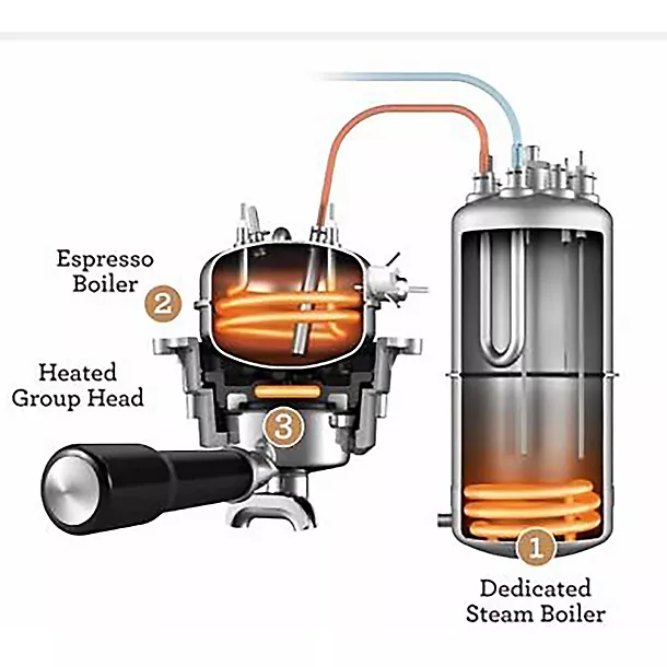 At the heart of the Oracle is the dual stainless steel boiler triple heat system. It has a dedicated espresso boiler which uses PID technology for accurate temperature control to within 1°C, and a steam boiler to deliver instant and continuous steam. Espresso is extracted and milk is textured simultaneously so that both are ready at the same time and the delicate aromatics are captured and preserved for optimum results. The automatic steam wand also ensures milk is the optimum texture for different drinks, from silky smooth for lattes to a creamier texture for cappuccinos.