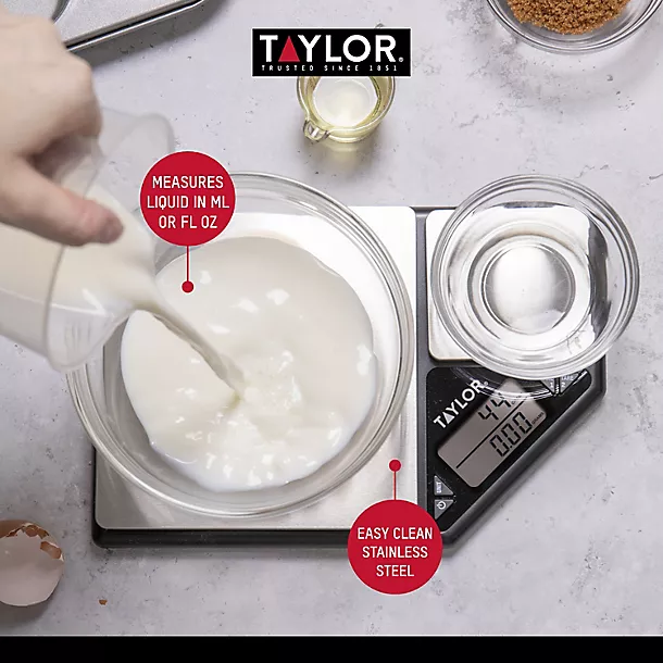 Following a recipe to the letter can be vital for perfect baking results, which means a lot of weighing and measuring. Thankfully, Taylor’s clever Dual Platform Scale is here to save you time by allowing you to weigh two ingredients at the same time – just the thing for batch bakers.
