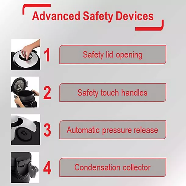With automated steam release, as well as auto-adjusting pressure and temperature, there’s no need to worry about pressure levels or burning food – the Tefal Cooke4Me+ knows exactly what to do, and when to do it. What’s more, it’s equipped with a condensation collector to keep the hot steam away from your hands to avoid any steamy mishaps.